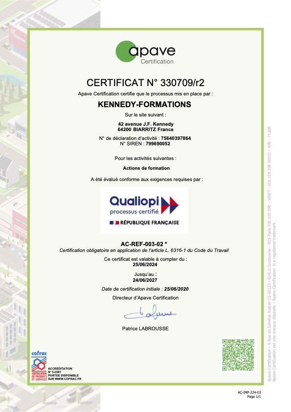 -La plupart de nos cours sont privés ou en duo si vous venez à deux- Passez nous voir et Marie vous indiquera comment ouvrir votre compte CPF -Du français pour les Étrangers, mais aussi des remises à niveau pour les Français ;-Tous les examens officiels dans toutes les langues, pour certifier votre niveauKENNEDY-FORMATION